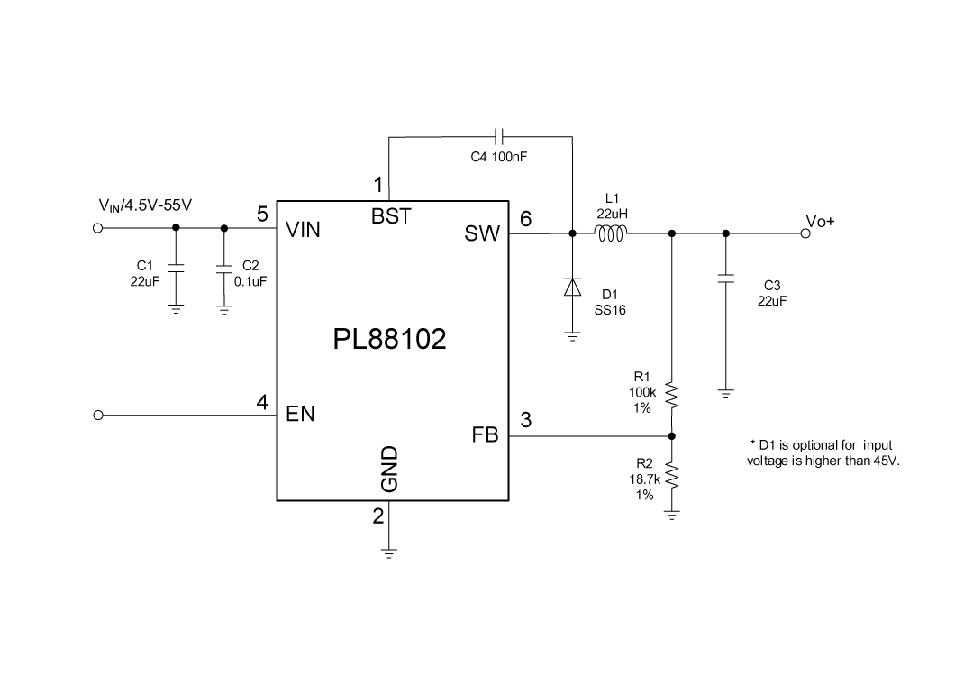 PL88102不是款單面55V,600mA穩壓電開關按鈕調養器。它集成同一款 80V 550mΩ高側和同一款 80V 350mΩ低側工作功率電開關按鈕,以在4.5V至55V的寬任務卡的輸出線電壓占比內提供求關系600mA的繼承了負債直流電。谷值直流電組織形式控制提供求關系極速瞬態相呼應和逐時間是直流電限量。
